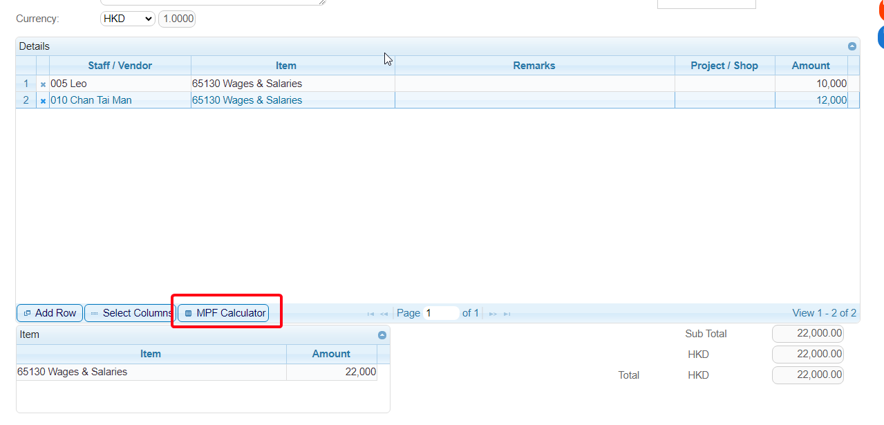 可以針對發票逐行輸入多項按金。用戶可依據整單發票金額輸入相應的百分比,系統將自動計算並填充按金金額;用戶亦可根據實際要求,直接手動輸入確切的按金金額。
