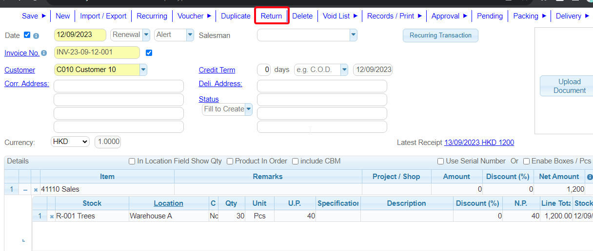 2. 如你的客戶給你按金的時候,是按照特定發票收取並扣減按金,請參考以下步驟: